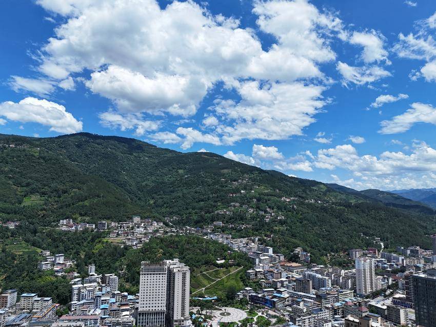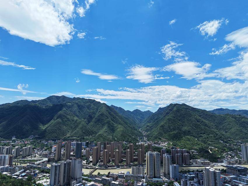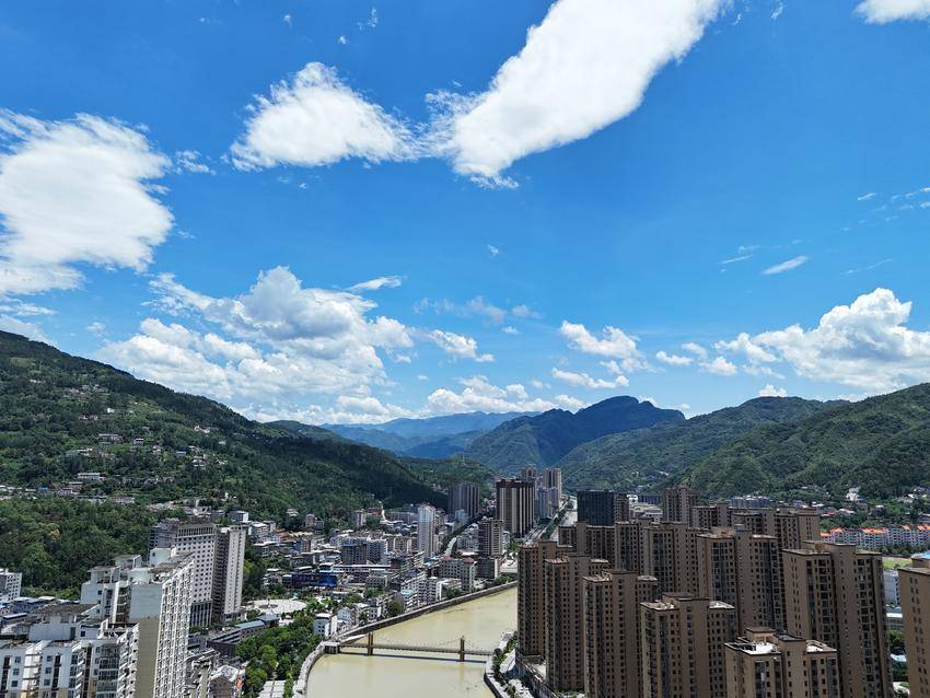 仲夏时节,山城保康天气晴好,城区碧空如洗,朵朵白云与湛蓝的天空、美景如画的自然风光相得益彰,令人心旷神怡。